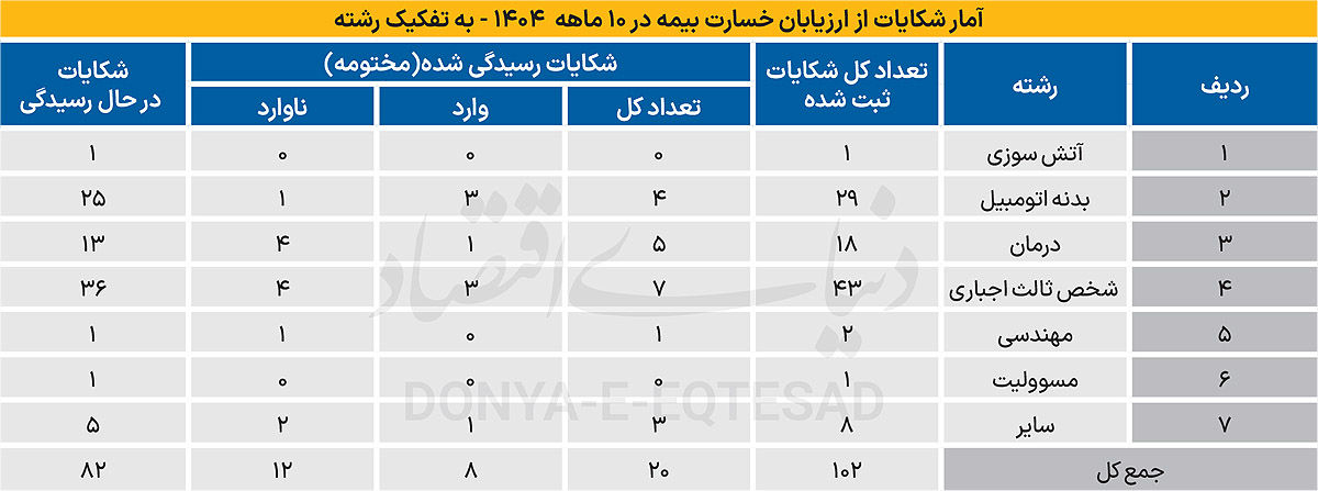 آمار شکایات بیمهای ۱۰ ماهه سال ۱۴۰۴ منتشر شد