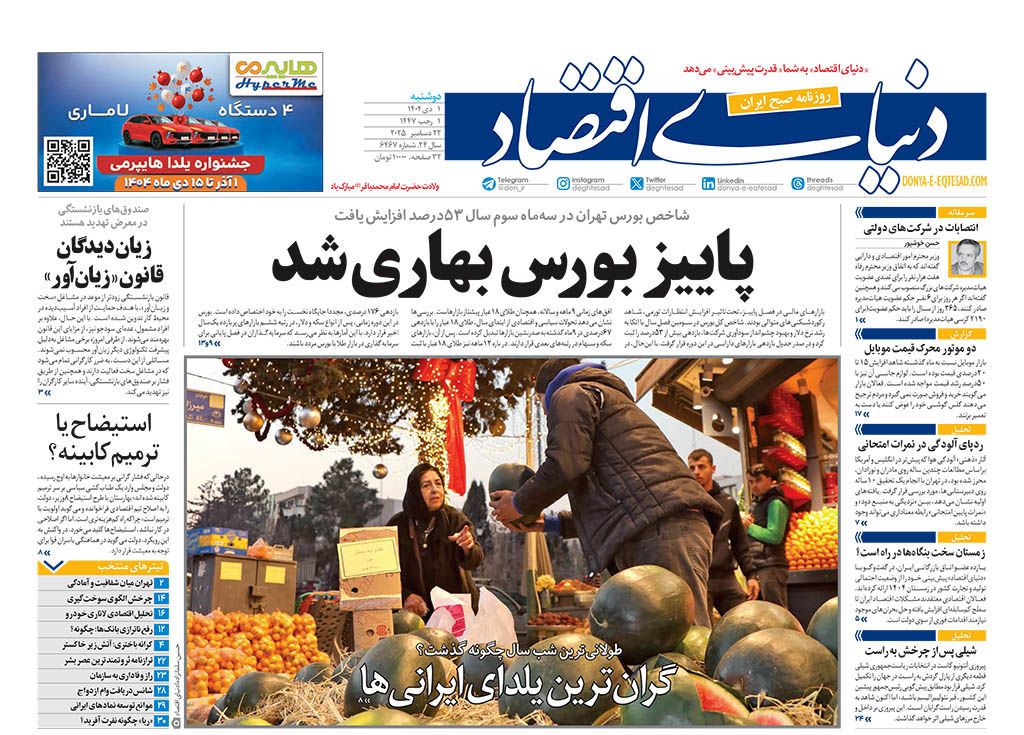 نسخه کامل شماره امروز روزنامه دنیایاقتصاد را اینجا بخوانید