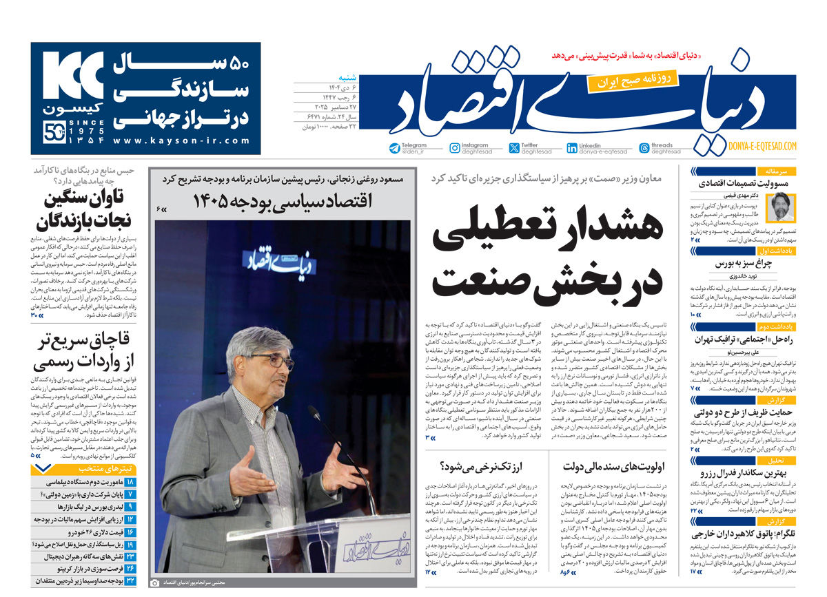 نسخه کامل شماره امروز روزنامه دنیایاقتصاد را اینجا بخوانید