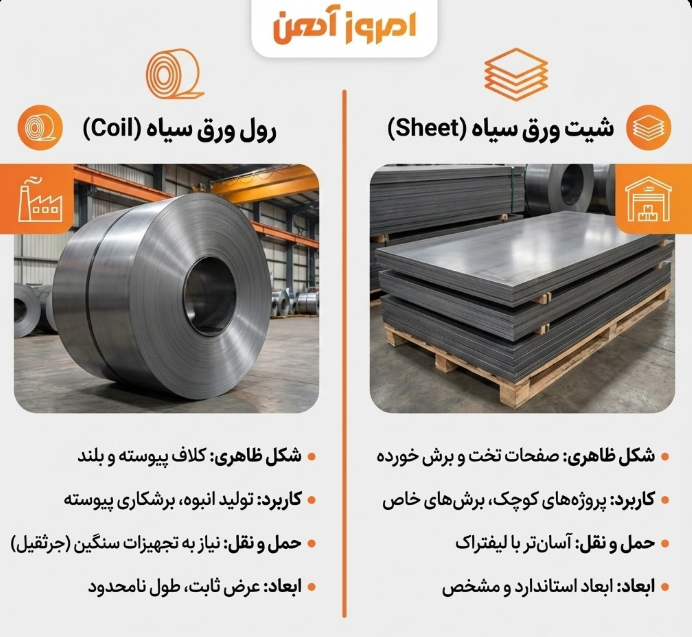 ورق های سیاه بعد از تولید در شکلهای مختلفی وارد بازار میشوند و هر یک کاربرد خاص خود را دارند.