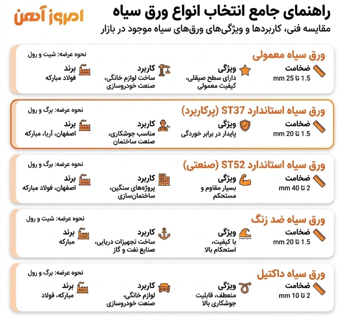 نگاهی به اطلاعات انواع ورق سیاه